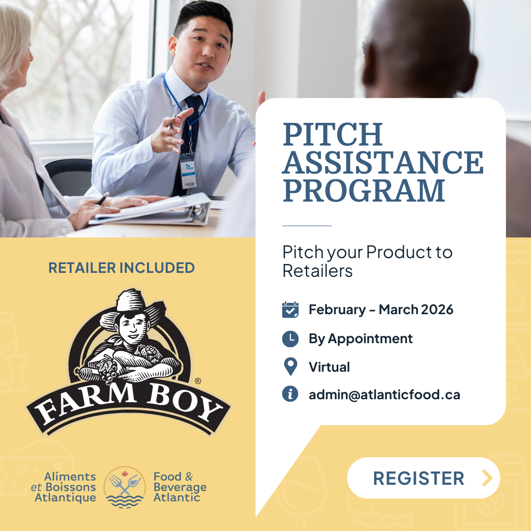Through the Food & Beverage Atlantic's Pitch Assistance Program, FBA will support you every step of the way—from evaluating your retail readiness to guiding you through the pitch process and providing post-program follow-up to help ensure your success.