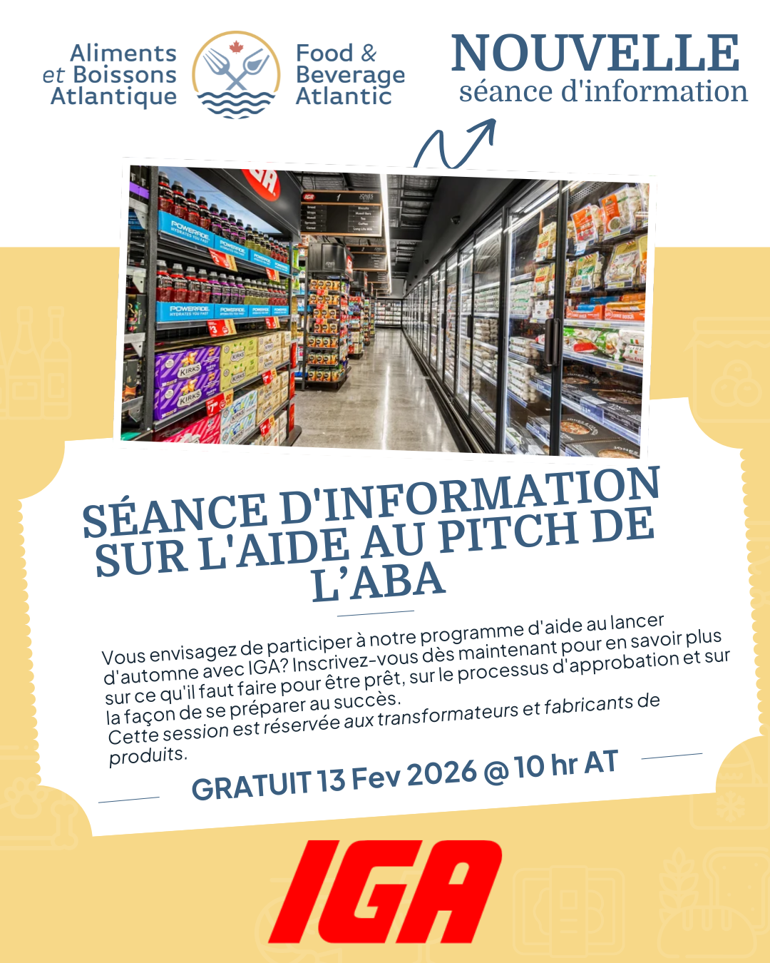 ABA est heureuse de collaborer avec IGA, un détaillant présent au Québec et au Nouveau-Brunswick comptant plus de 300 emplacements, afin de créer des occasions stimulantes pour les entreprises offrant des produits prêts pour le marché.