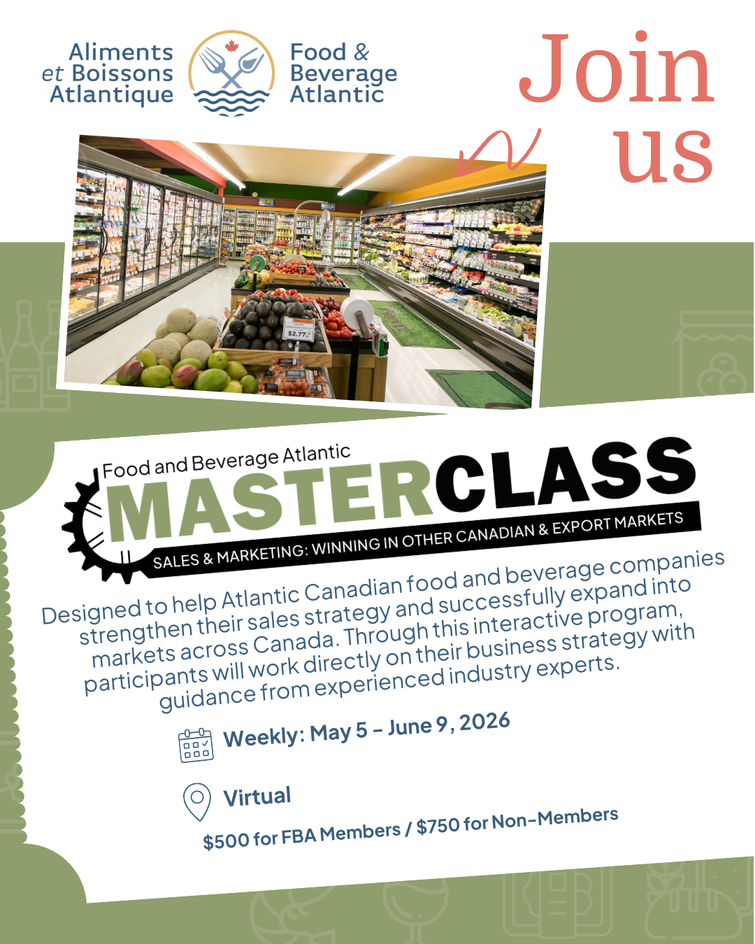 The Masterclass Sales & Marketing: Winning in Other Canadian & Export Markets is designed to help Atlantic Canadian food and beverage companies strengthen their sales strategy and successfully expand into markets across Canada and beyond.